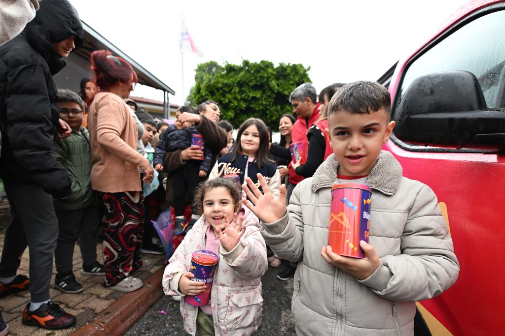 Mersin Büyükşehir Belediyesi, Ramazan Bayramı arifesinde çocukların yüzünü güldürdü. Sosyal Hizmetler Dairesi Başkanlığı koordinesinde, çocuklara içinde bayram şekerleri ve satranç takımı bulunan özel kutular hediye edildi. Büyükşehir Belediyesi’nin 13 ilçede toplam 60 bin çocuğa ulaştırdığı bayram hediyeleri hem çocukları hem de ailelerini mutlu etti.
